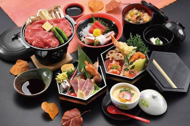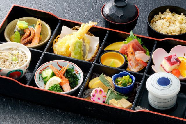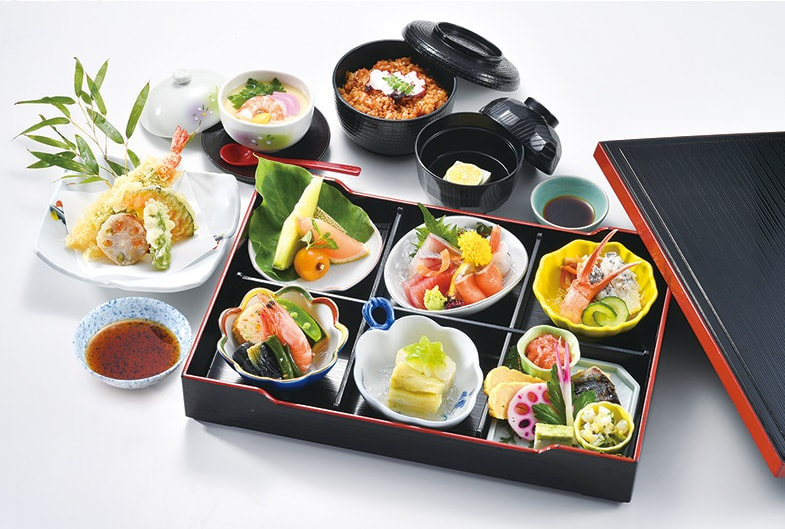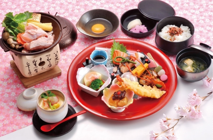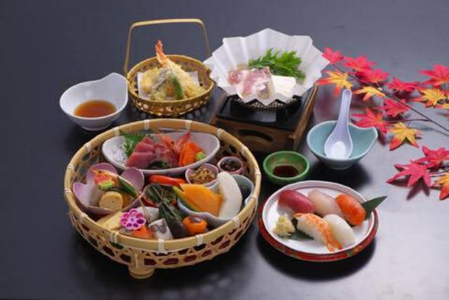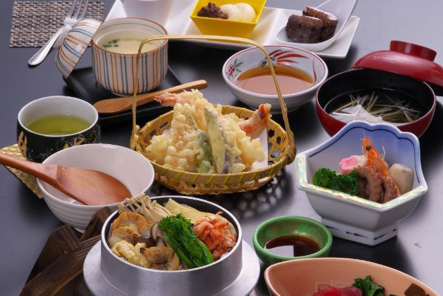 - 前菜・お造り・煮物・茶碗蒸し・そば・ご飯・お吸い物・デザートこちらが入ったお得な会席膳です。